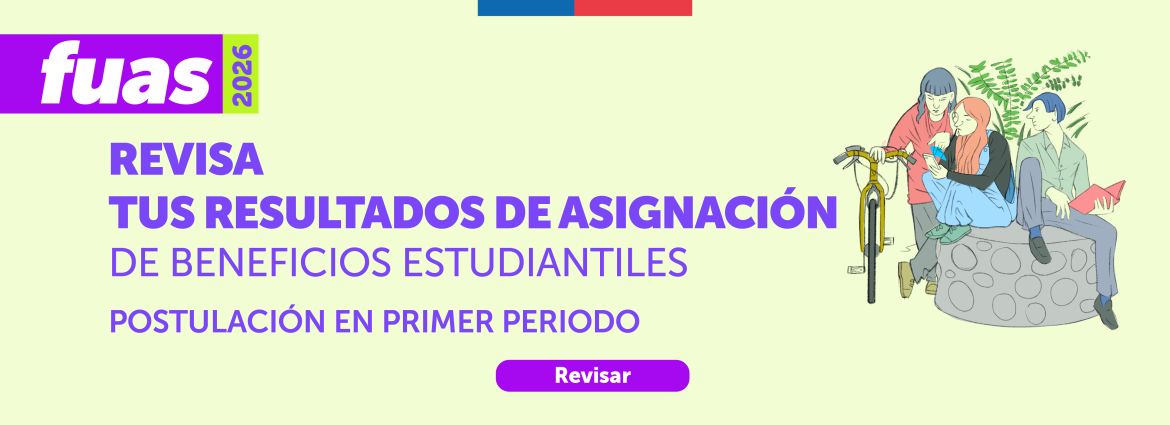 - Resultados10/03/2026Los resultados de la Asignación correspondientes al Primer Periodo FUAS 2026. A través de este proceso, se determinan las asignaciones para beneficios de educación superior, incluyendo gratuidad, becas de arancel y créditos estudiantiles,