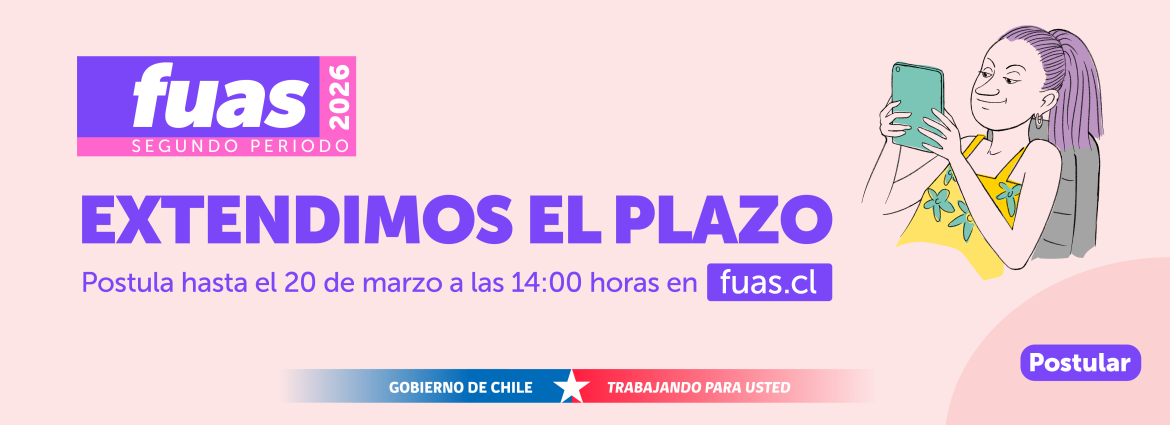 - Segunda Postulación FUAS12/02/2026Si necesitas apoyo financiero para estudiar en la educación superior en 2026, ya está activo el segundo periodo de postulación a gratuidad, becas de arancel o créditos estudiantiles, hasta el 12 de marzo.